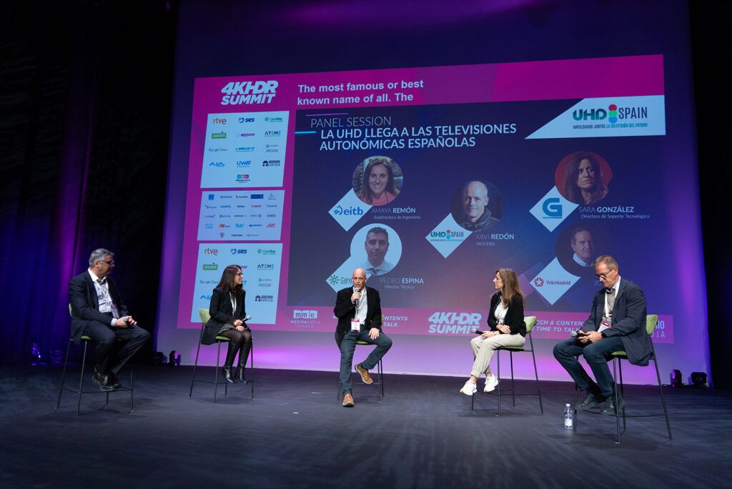 The vice-president of UHD Spain moderated the panel discussion entitled ‘UHD comes to Spanish regional television stations‘, which examined how television stations such as Canal Sur, EiTB, Televisión de Galicia and Telemadrid are tackling the future of UHD television, the first simulcast broadcasts and the technical challenges posed by this technology. Pedro Espina, Technical Director of RTVA, lamented the lack of resources and spectrum that prevent greater deployment of UHD on regional television stations. Amaya Remón, Deputy Director of Engineering at EiTB, a channel that broadcasts in UHD via HbbTV, advocated “having the entire value chain ready for when the spectrum opens up”. For her part, Sara González, Director of Technological Support at Televisión de Galicia, the only regional broadcaster that simulcasts in UHD via DTT, added “the complexity of maintaining simulcast”. Finally, José María Casaos, Technical Director at Telemadrid, pointed out that, without underestimating UHD, the idea of Madrid’s regional television “is to produce native content in HDR, which is also complex, but not as much as 4K in terms of resources”.